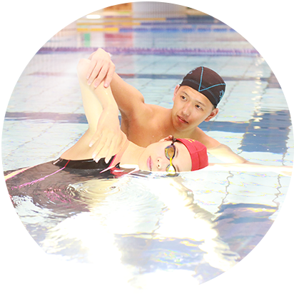 日本水泳連盟公認の指導員資格を持つベテランコーチが瞬時に泳力を見極め泳ぎの'コツ'をわかりやすく伝えます。